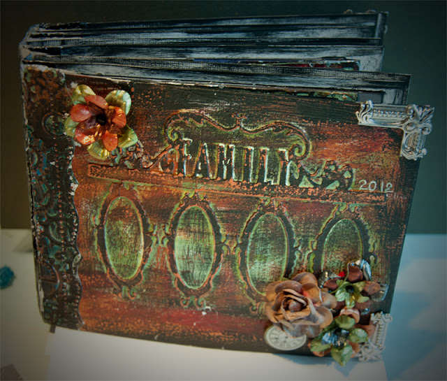 Men när jag hade sandpapprat det gröna embossade pappret var jag bara tvungen att gå lite med svart akrylfärg och sen var det kört liksom.. :D)